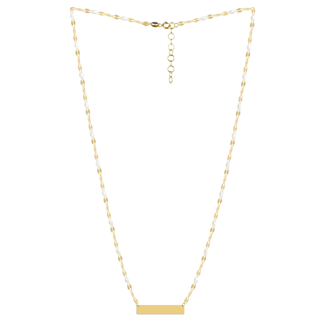 Collier Plaque Or Résine Blanc