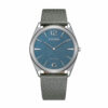 Cadran bleu et bracelet cuir gris